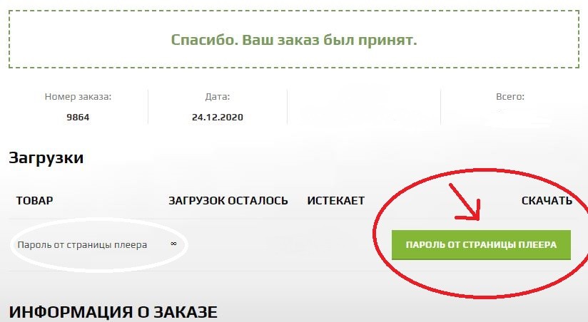 После оплаты вернитесь на страницу и откройте код от плеера (он также приходит на почту — проверяйте папку СПАМ). Скопируйте его.