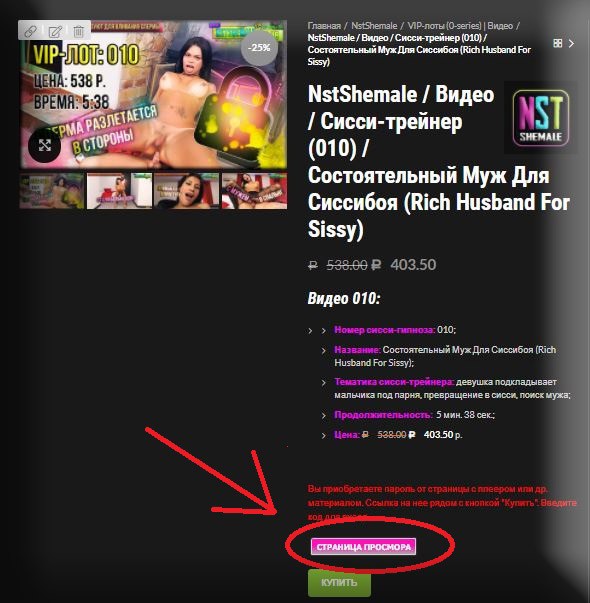Сисси-гипноз с ценой 0 рублей можно смотреть сразу, платные товары защищены паролями: