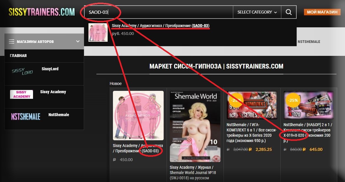 SissyTrainers.Ru/.Com — это магазин авторского контента. Здесь вы можете смотреть бесплатно и покупать сисси-гипнозы, мотивацию, озвучки, комиксы для сисси, журналы, прочие тематические порно-ролики от разных проектов и авторов.